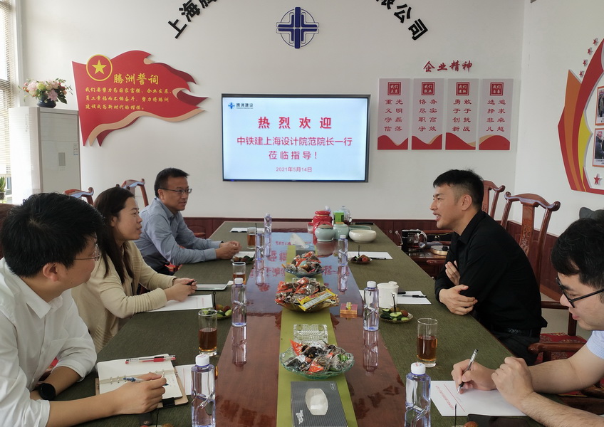 5月14日上午,腾洲建设集团董事长周昌海在上海嘉定安亭总部会见了中铁建上海设计院范军琳院长一行,双方进行了深入会谈并达成了初步合作意向。集团公司副总裁林栓定、行政管理中心总经理傅常栋陪同参加。