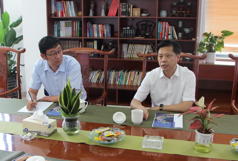 3044永利集团董事长周昌海、总裁张扣林、副总裁林栓定、总部大厦建设指挥部指挥长毛华明全程陪同。康志田总经理首先听取了张扣林总裁对3044永利集团的情况介绍。情况介绍从社会信息、经营情况、项目案例、发展战略、党工建设五个方面详细阐述了3044永利集团风雨兼程、砥砺奋进的十年征程。