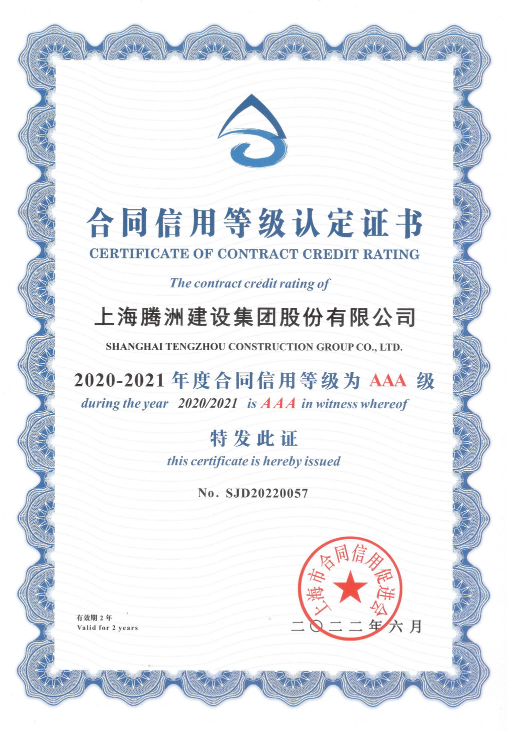 3044永利集团获2020-2021年度合同信用AAA等级称号